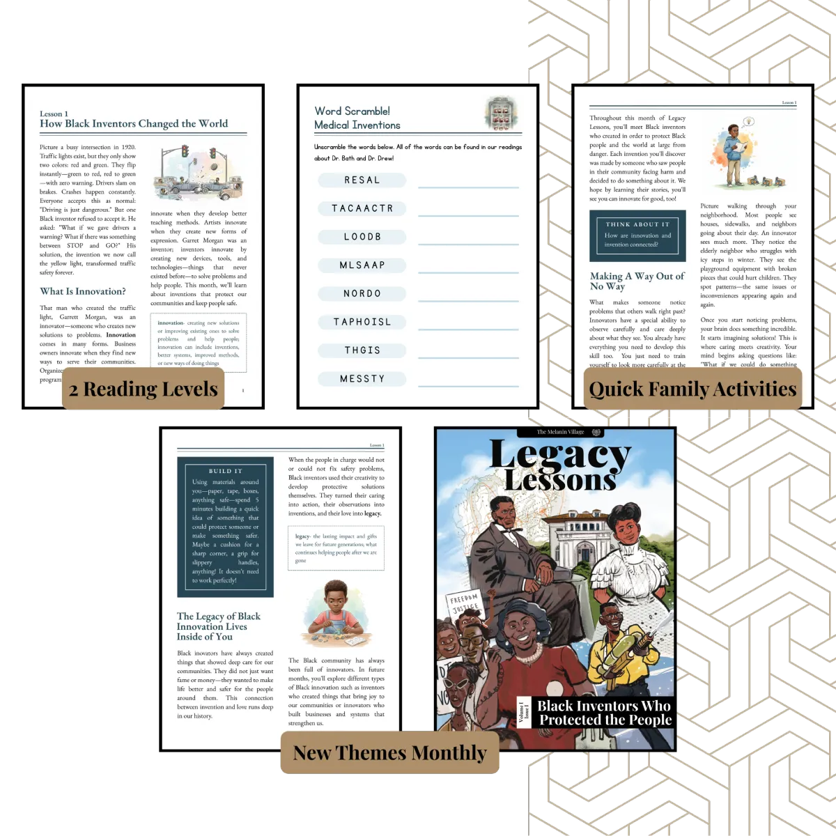 This year, each month of Legacy Lessons explores a different theme of Black innovation and excellence. Our kids will learn about Black inventors, business owners, community organizers and more. Each monthly issue highlights Black joy, resistance, impact, and freedom.