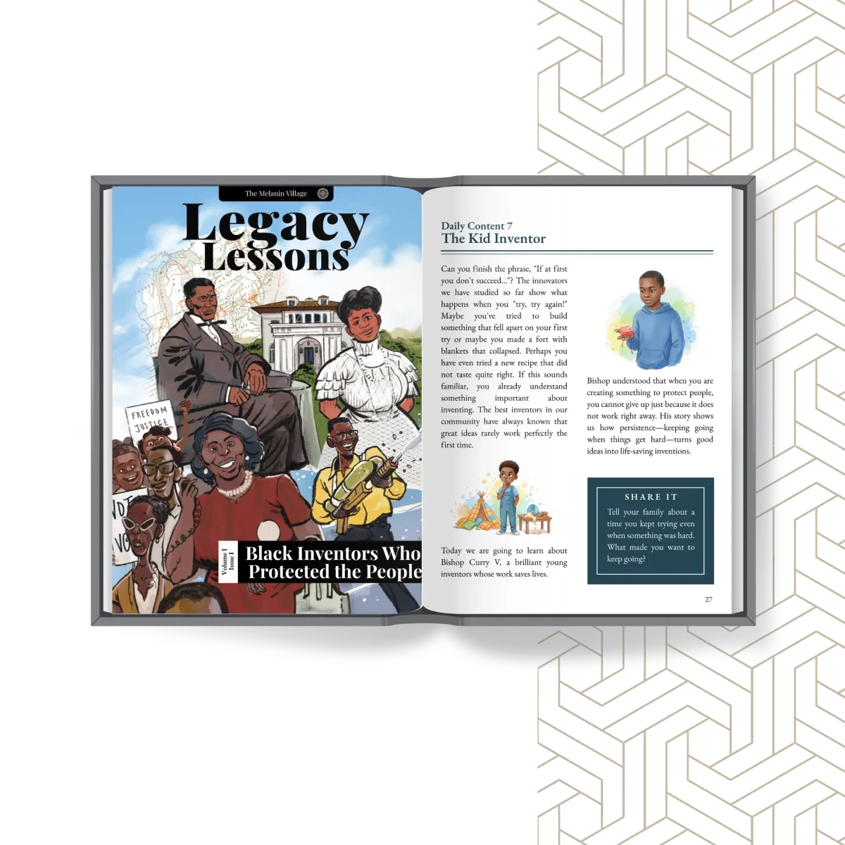 Try it FREE for 30 days. See how your children's eyes light up when they learn about an 8-year-old inventor saving babies, a woman who made homes safer, a man whose inventions protect us on the roads every day. Then decide if it's worth less than the cost of a kids' meal to continue their journey.